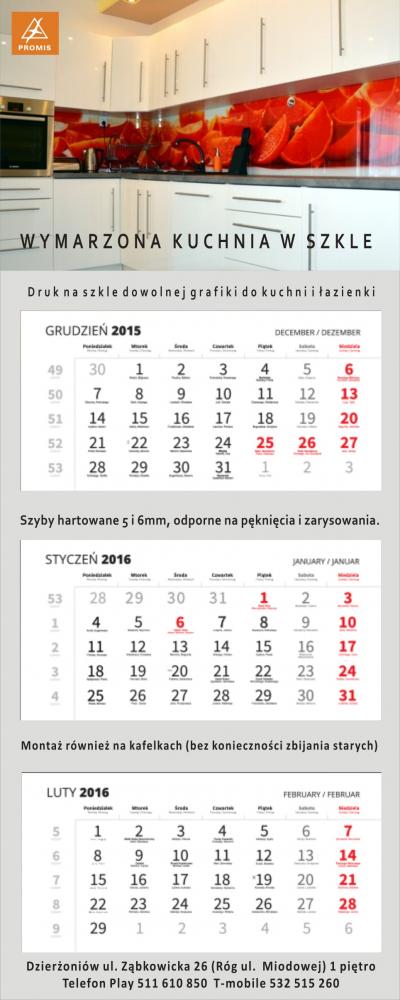 - wymiary 30x67 cm; - główka pełny kolor; - plecki białe lub w odcieniach szarych. Napisy między kalendariami czarne lub odcienie szarego bądź białego; - w komplecie okienko z paskiem; - mocne kalendaria dobrze przyklejone do całości; - zawieszka; dziurka w główce