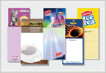 Przykładowo notes A7 (7,4 x 10,5cm) z 50 karteczkami z dowolnym nadrukiem w kolorze i główką magnetyczną
