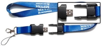Smycz z pendrivem w złączce. Szerokość smyczy 2cm. Dostępne różne pamięci od 1 do 16GB.