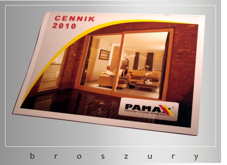 Typowy cennik składamy standardowo z grubszej błyszczącej okładki i środków na cieńszym papierze matowym offsetowym. Całość w wersji ekonomicznej jest zszywana zszywkami, z możliwą opcją oczkową do archiwizacji w segregatorze.